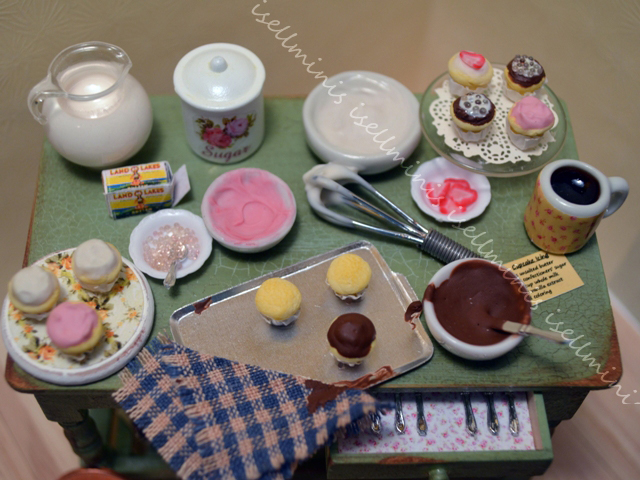 Dollhouse miniature cupcakes kitchen baking table food
