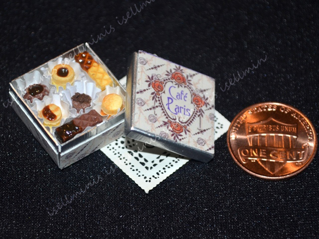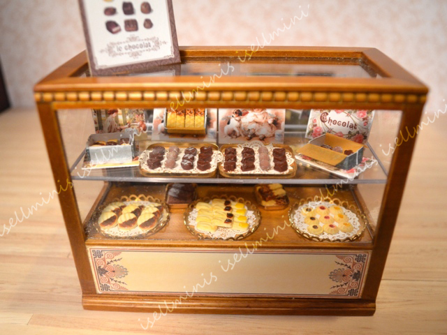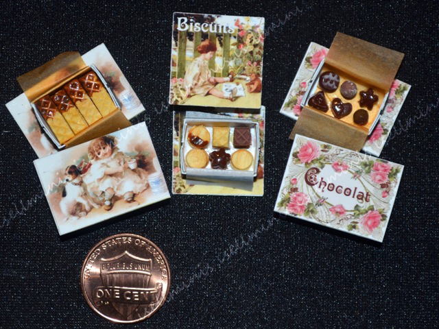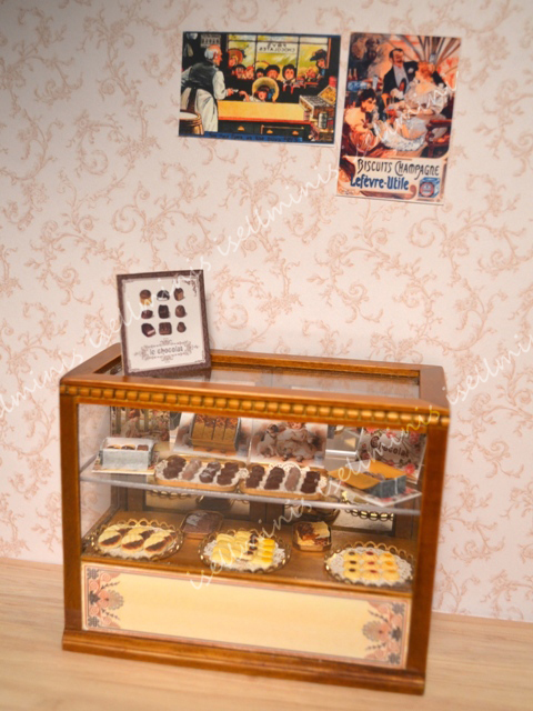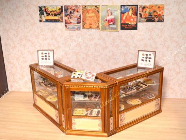 Dollhouse miniature vintage style food store display counter chocolate biscuits